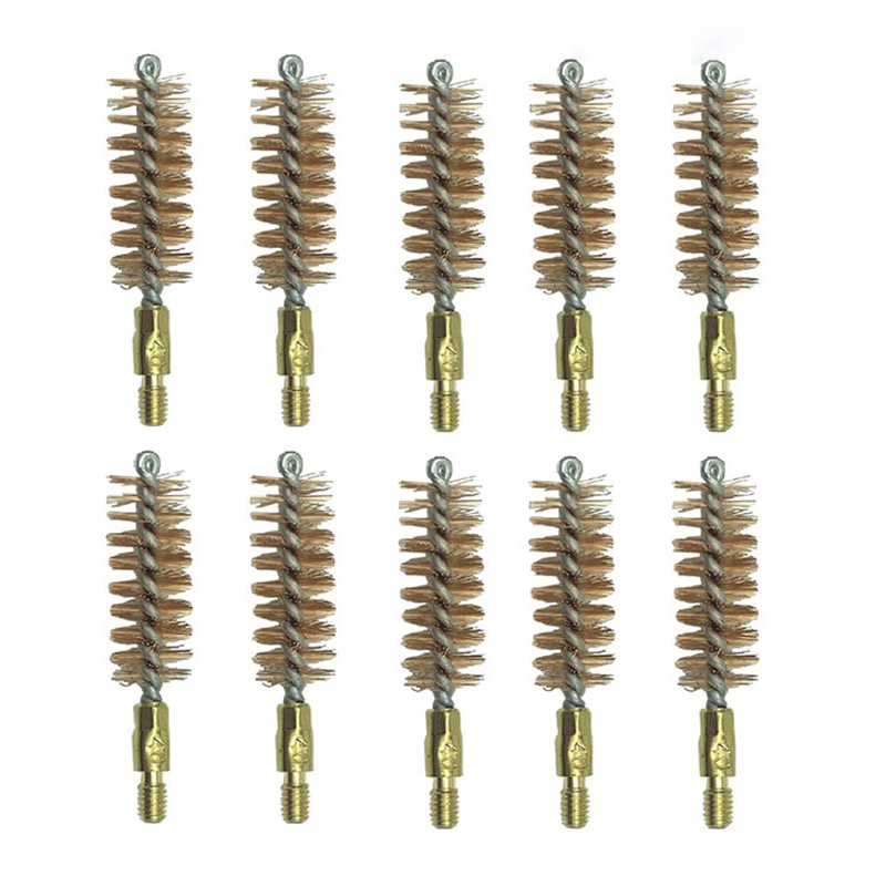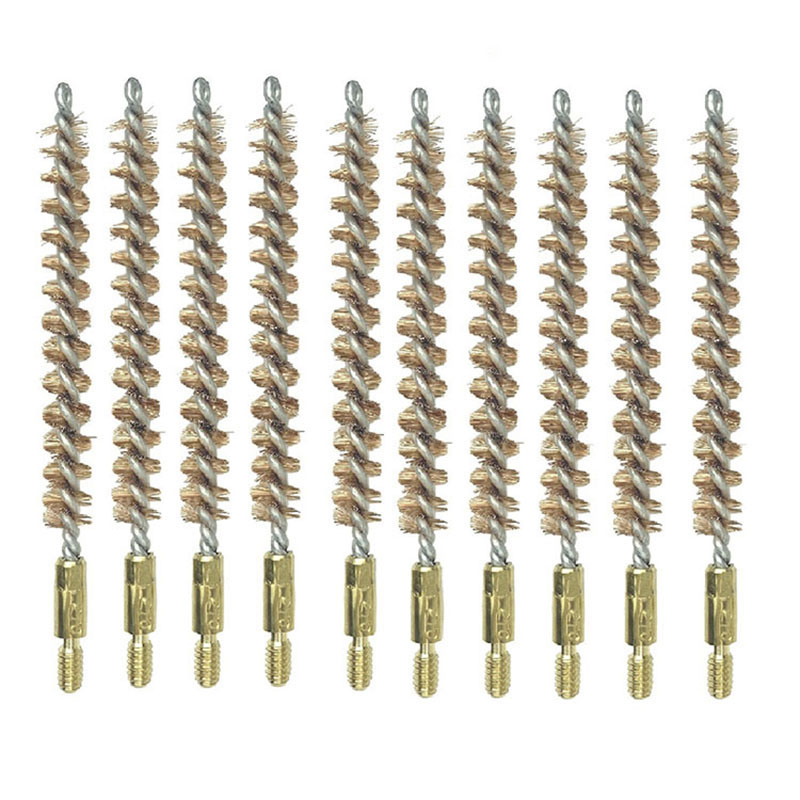Bronzhuzalos pisztolytisztító kefék furattisztításhoz ● Nagy teherbírású sárgaréz huzalok. Rozsdamentes acél szár. ● Minden kefe átmérője 0,5-2 mm-rel nagyobb lesz, mint a megfelelő furat belső átmérője, hogy alaposan meg tudja tisztítani a furatot. ● Minden kefe, amelynek kaliberszáma nem egyértelműen látható. ● Az anyát szorosan és erősen rányomják a kefeszárra. ● OEM és ügyféllogó elfogadva.