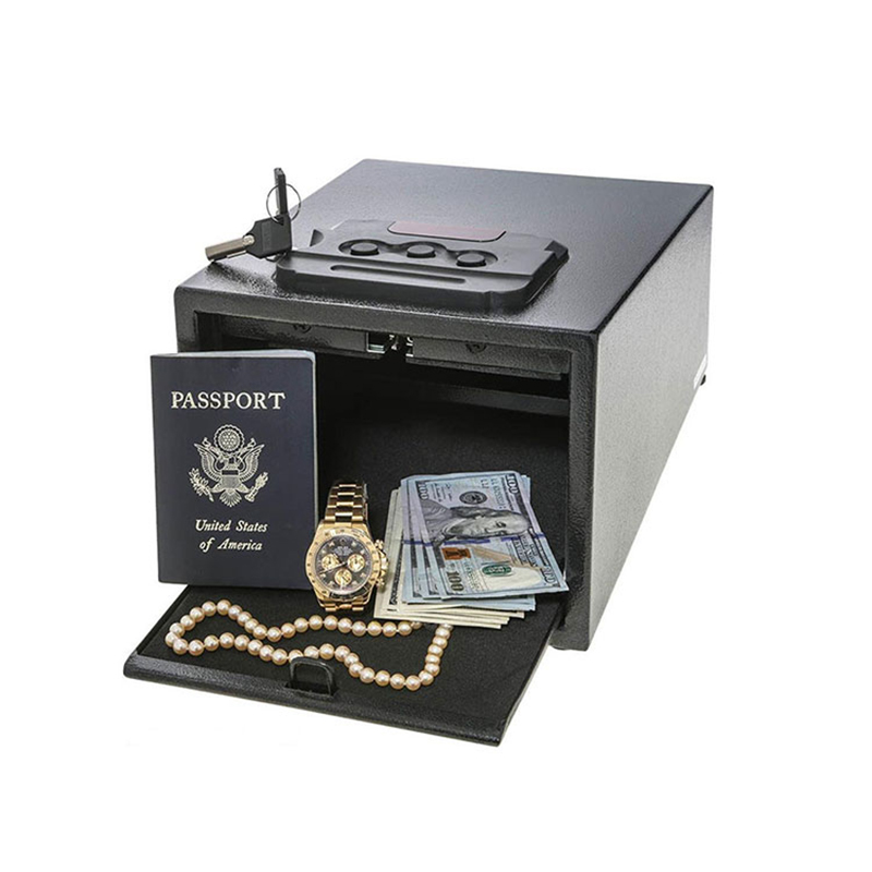 A széf elég kicsi ahhoz, hogy könnyen elrejtse, de elég nagy a kis lőfegyverek, értékes ékszerek, készpénz és dokumentumok tárolására