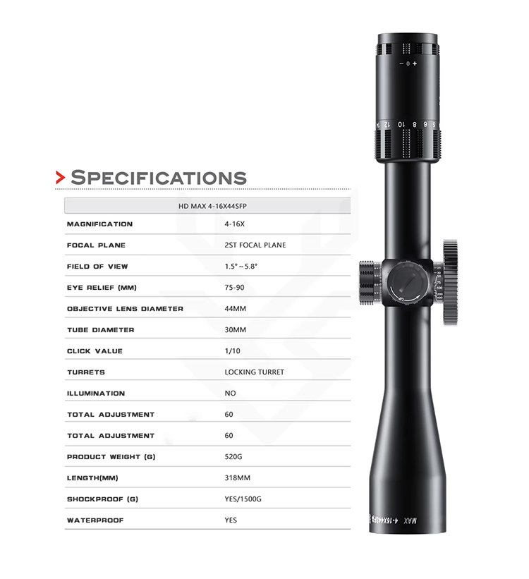 HD MAX 4-16X44SFP HD magas lencsés vadász monokuláris teleszkóp nagykereskedés