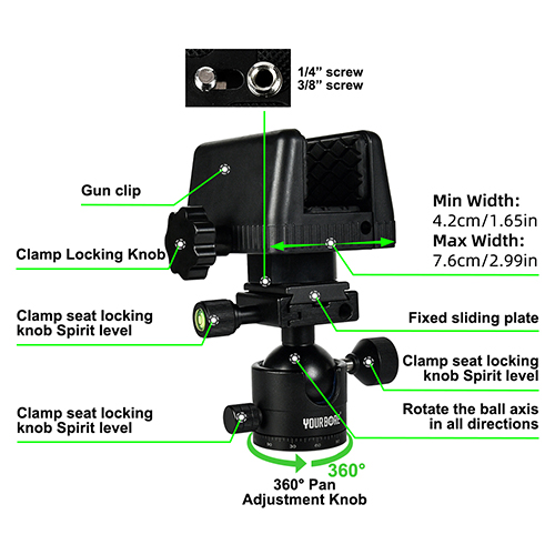 OEM CNC alumínium 360 fokos golyófejes nyeregtámasz bilincs vadászbothoz, egylábú állványhoz
