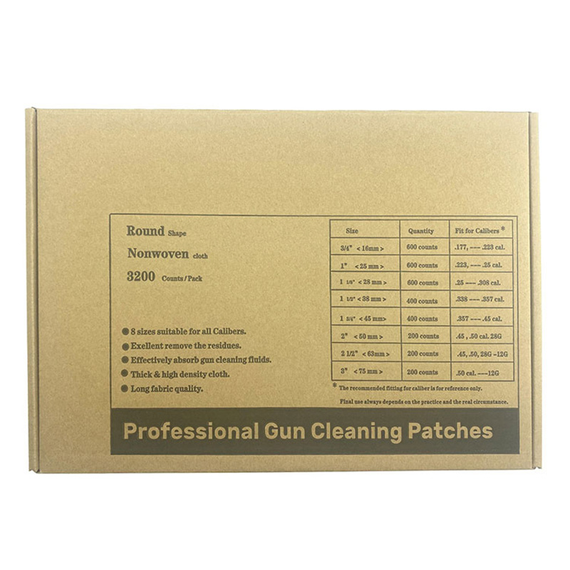 Univerzális fehér pamutvászon kerek pisztolytisztító tapaszok buborékfólia doboz 8 méretű, 3540 darab ● 【All in One Combo Pack】 A 8 méretű tisztítótapasz minden kaliberű lőfegyverhez illeszkedik 0,177 cal-tól. Shotgun 12G-hez; Takarítson meg pénzt és időt, és vásároljon különböző méretű lőfegyvereket a különböző kaliberű lőfegyverekhez; ● 【Nagy nedvszívó képességű pamut anyag】 Ez a nem szőtt ruha nagy felszívódású. Gyorsan felszívja a maradék folyadékot, eltávolítja a maradványokat és a rozsdát a furat felületéről. ● 【Vastag anyag】 A vastag nem szőtt szövetfelület nagymértékben megerősíti a tisztaságot. ● 【Minden méret egy tálcában】 A 8 méretet 8 tálcára csomagoljuk. És minden tálca, amelynek mérete a tálca mellé van nyomtatva. Könnyű megtalálni és a megfelelő méretet átvenni a csomagból. ● Az 【】】 Ügyfél logója elfogadható.